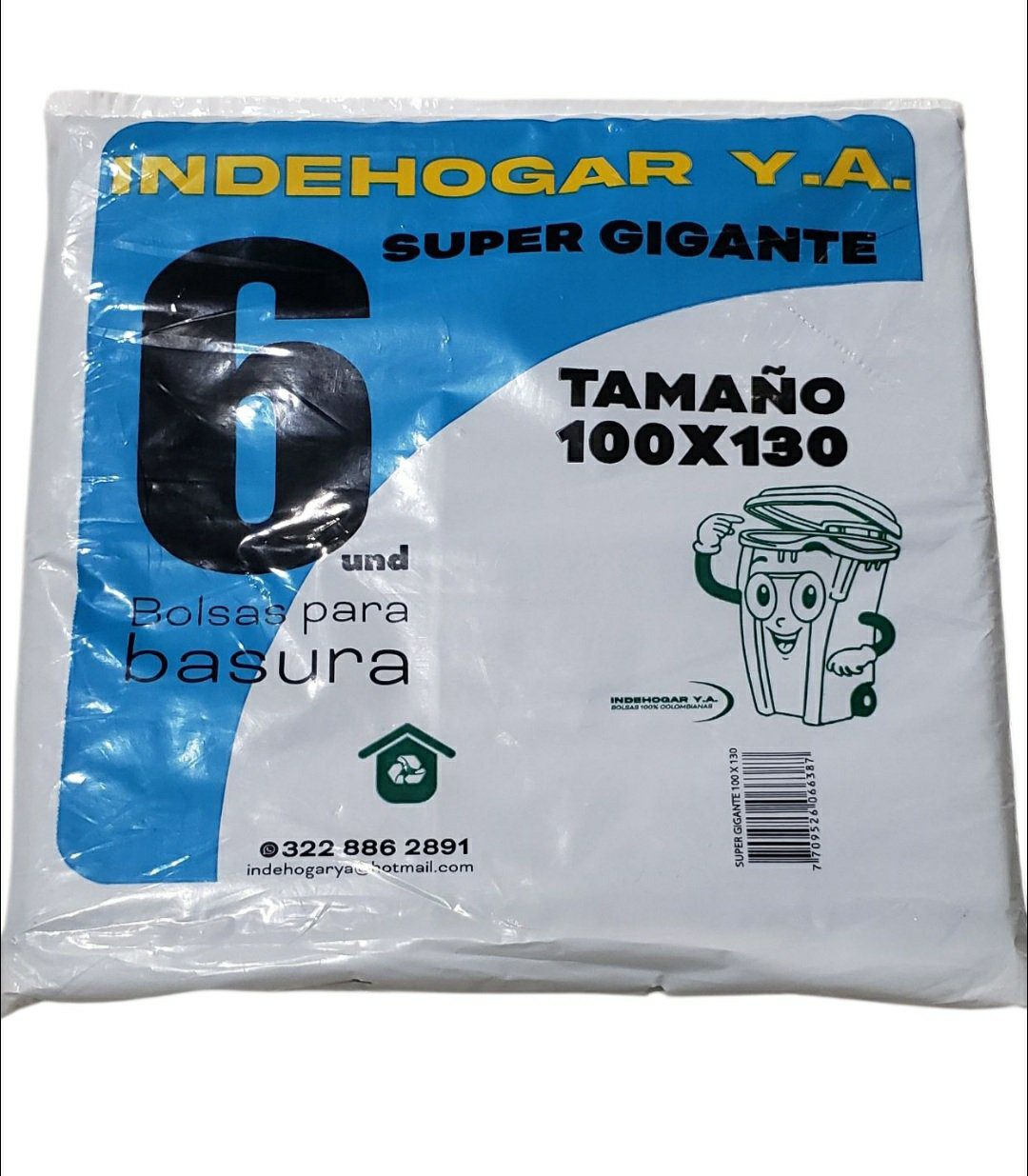 Bolsa Plastica IndeHogar Super Gigante Negra 6und 100x130cm cantidad