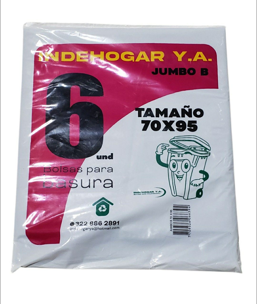 Bolsa Plastica IndeHogar Super Jumbo B 6und 70x95cm cantidad