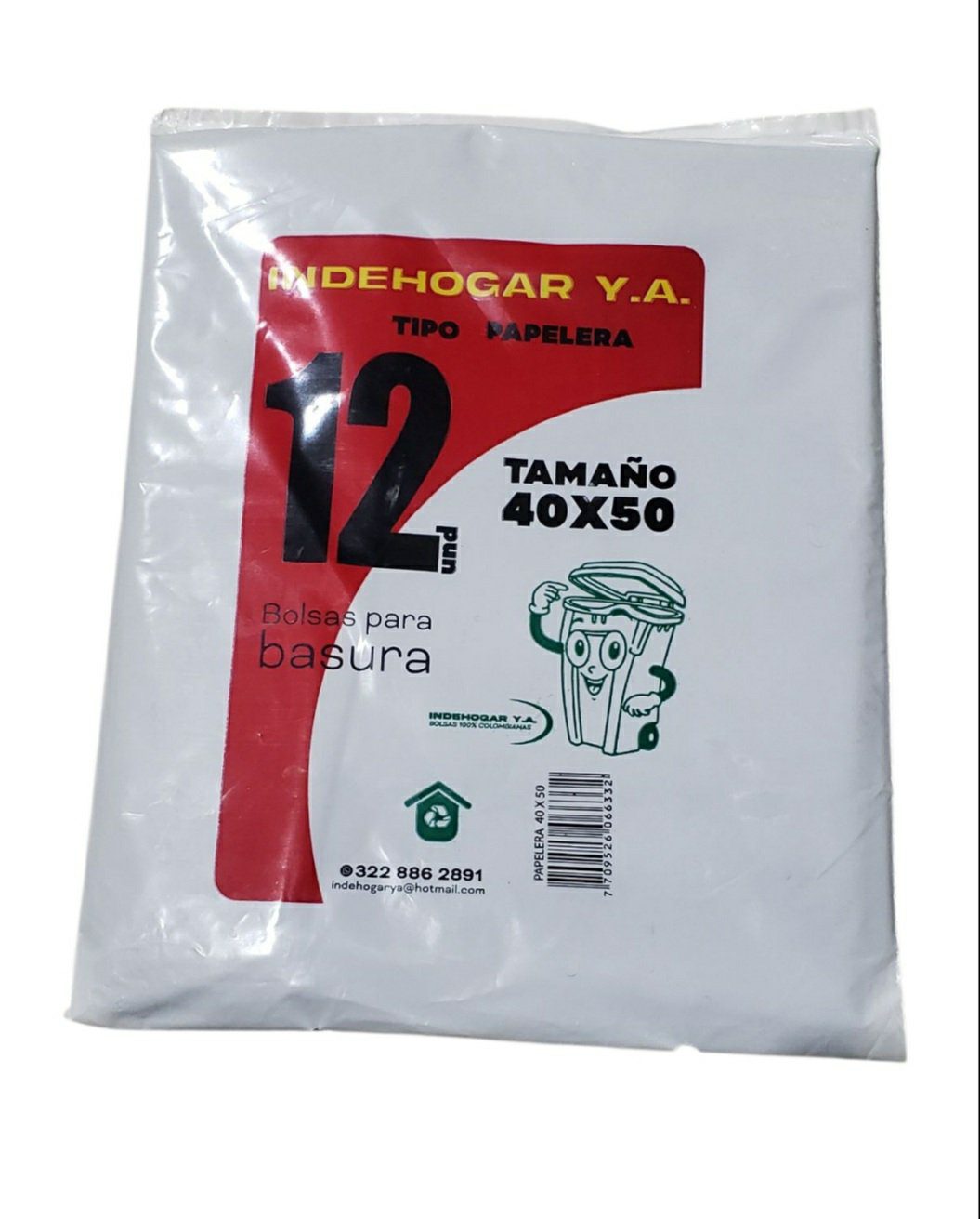 Bolsa Plastica IndeHogar Tipo Papelera Negra 12und 40x50cm