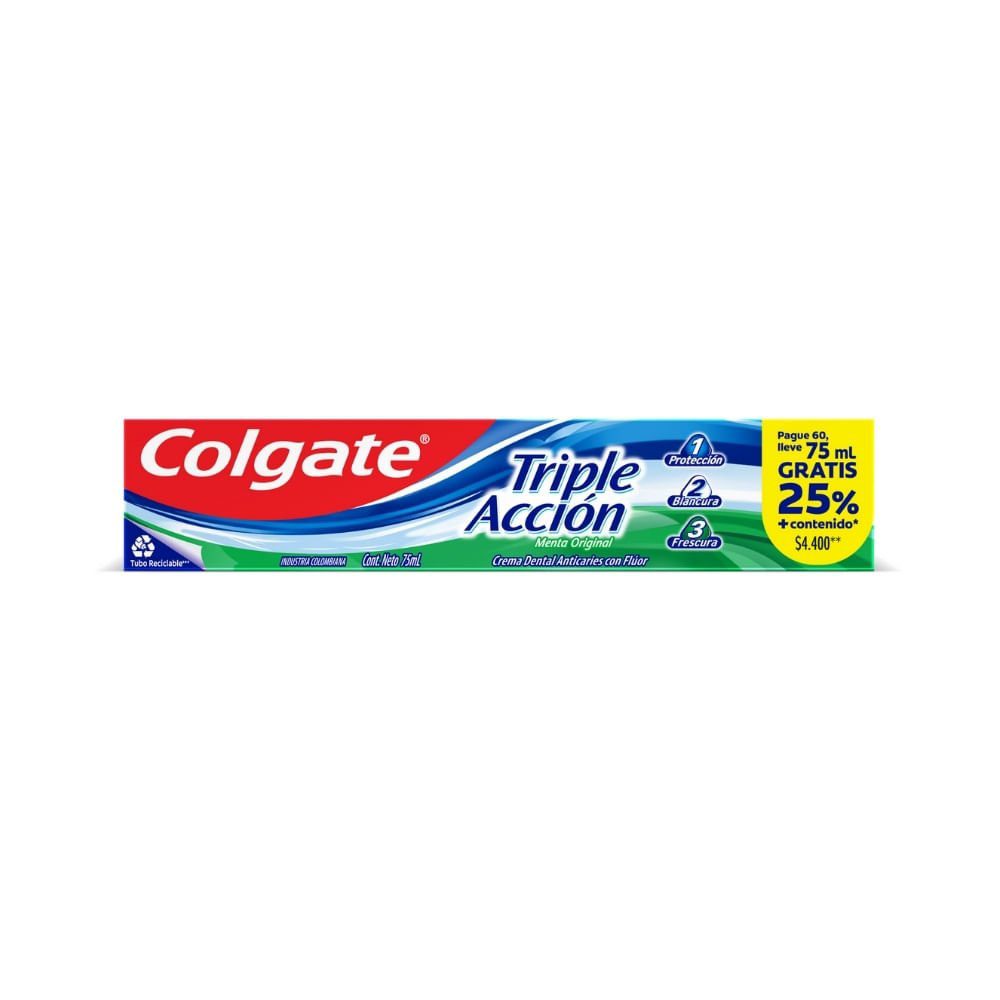 Crema Dental Colgate Triple Acción Menta Original x75ml