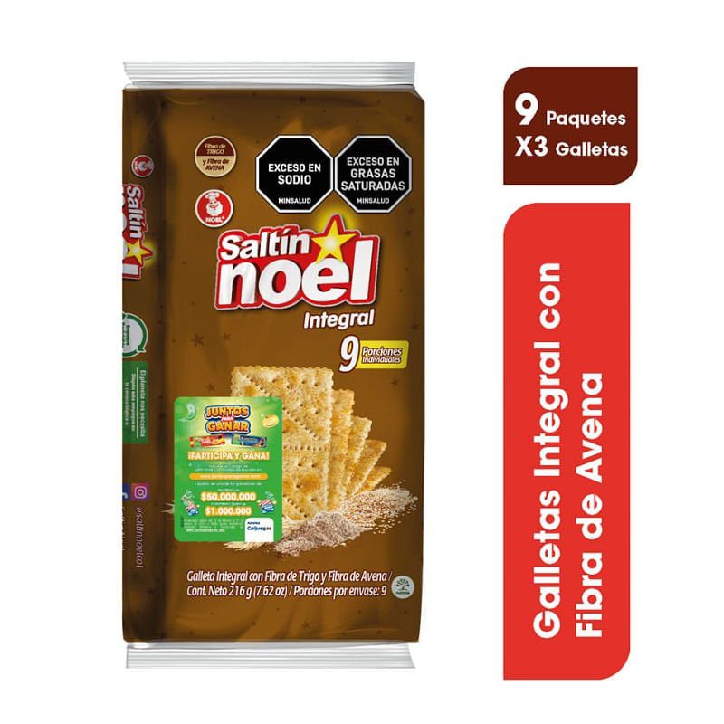 Galletas Saltin Noel Integral 9 Paq x216g cantidad
