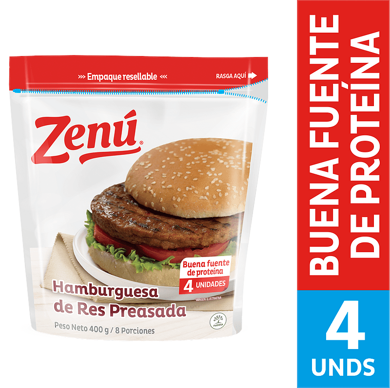 Hamburguesa Zenú De Res Preasada 4unds x400g cantidad