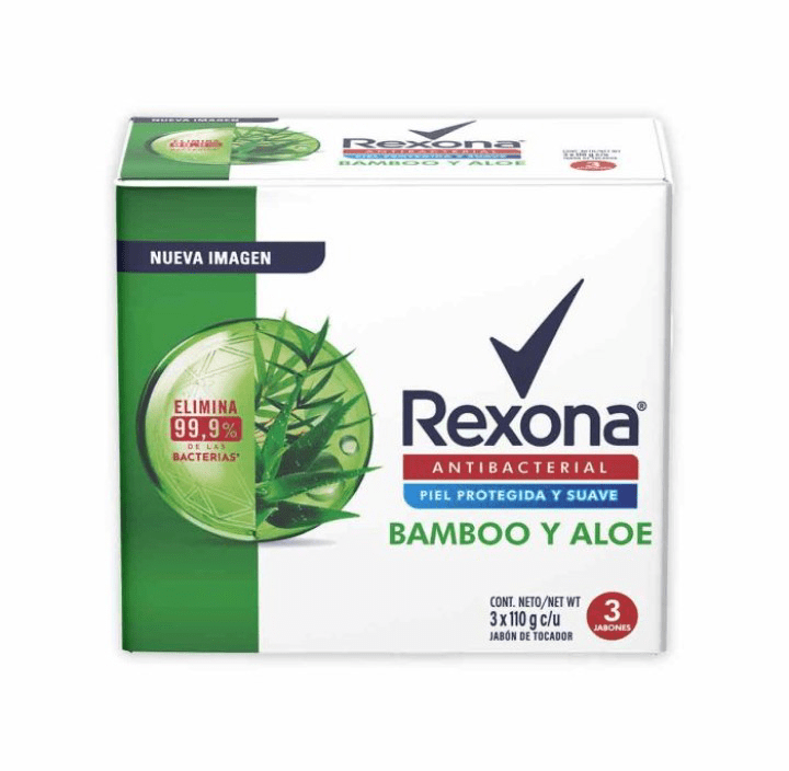 Jabón Para Piel Rexona Antibacterial Bamboo Y Aloe 3und x110g c/u cantidad