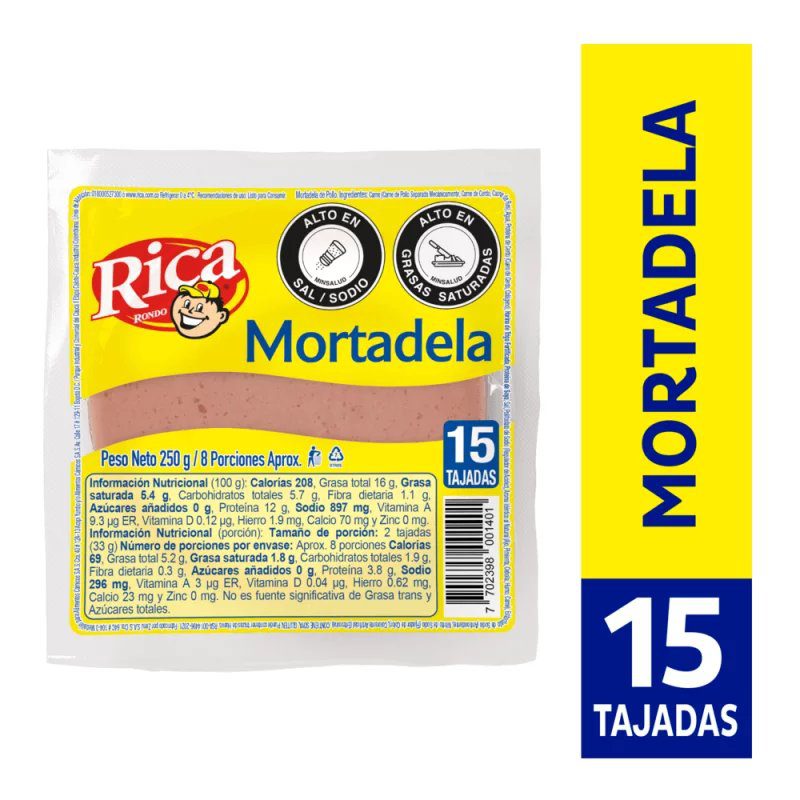Mortadela Rica 15 Tajadas x250g cantidad