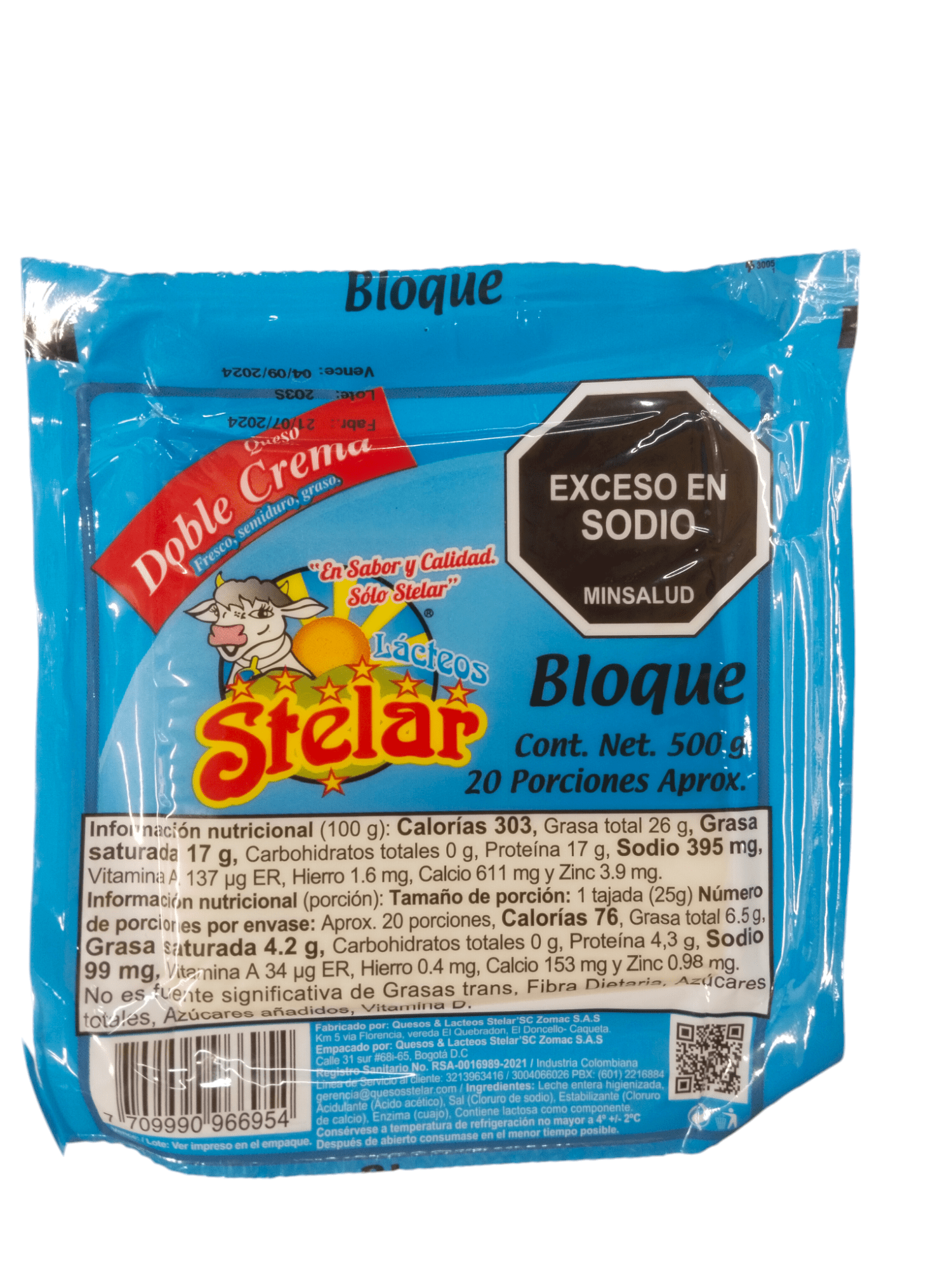 Queso Stelar Doble Crema Bloque x500g