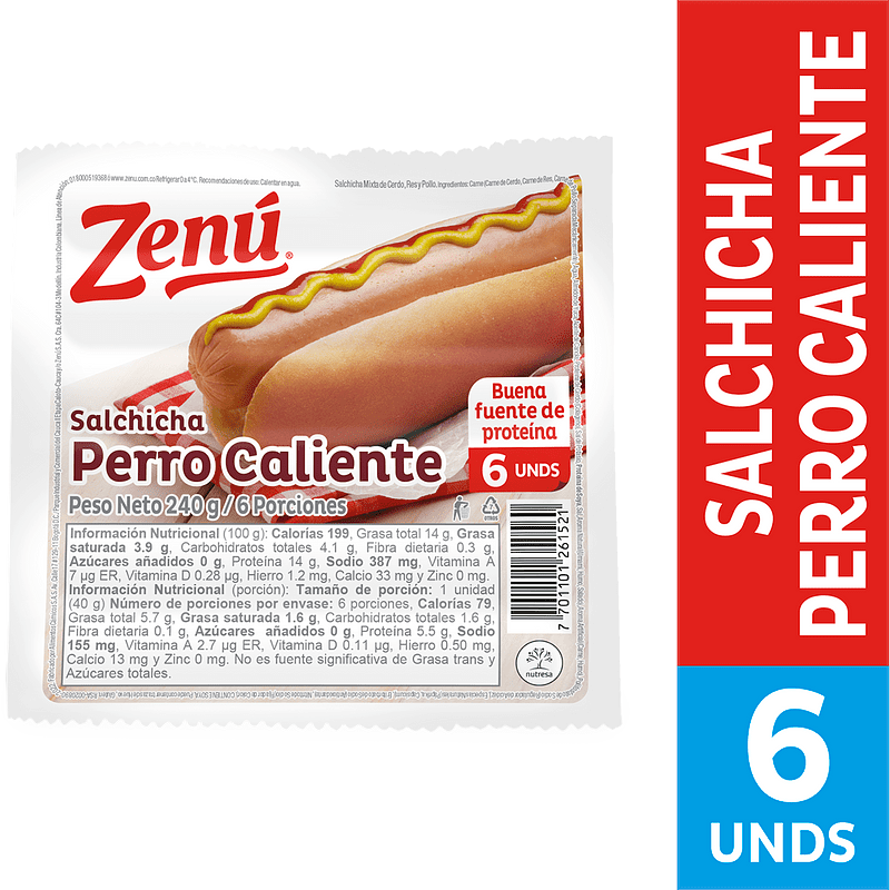 Salchicha Zenú Perro Caliente 6unds x240g